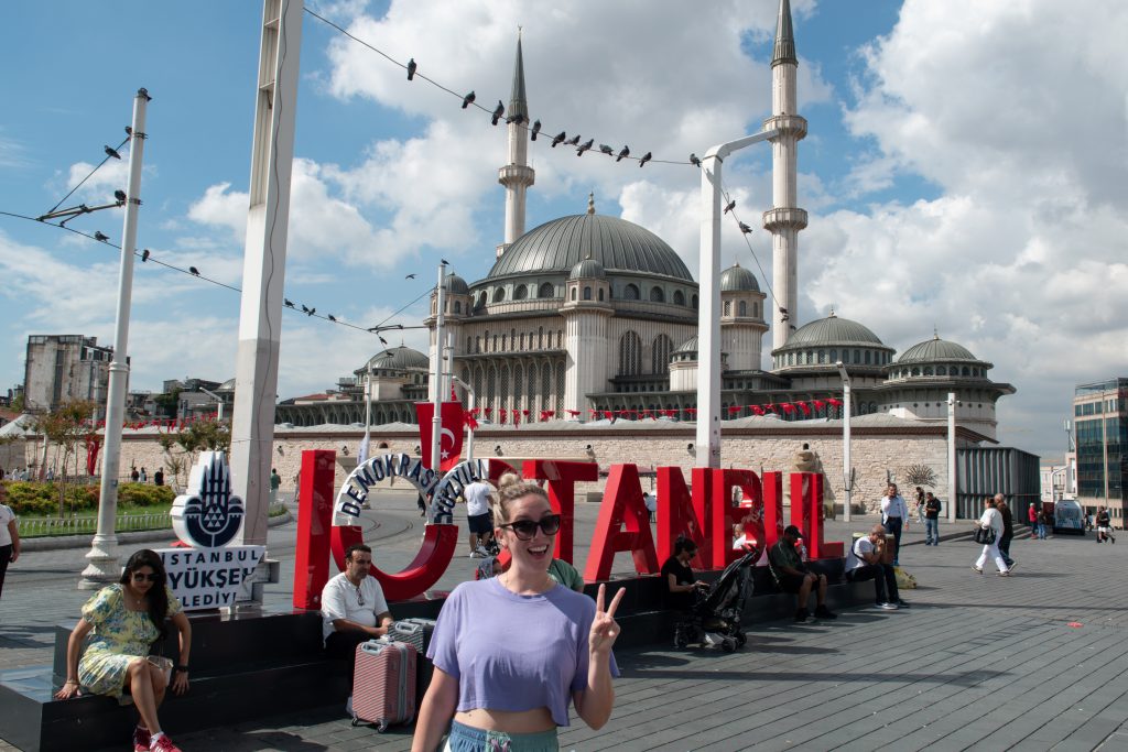 Nous logions tout près de la place Taksim du côté européen et au nord de la corne d’or. Cette place doit être visitée tant de jour que de soir et nous avions la chance de pouvoir passer par celle-ci à presque tous les jours. On y retrouve une imposante mosquée et le début de la rue piétonne Istiklal. Istiklal abrite de nombreux restaurants, bars, mais aussi plusieurs magasins. Elle est toujours bondée et un tram historique y circule encore. Nous conseillons de la parcourir au moins une fois et se rendre jusqu’à la tour de Galata, mais aussi de se perdre dans les rues adjacentes où il est possible de trouver des restaurants turcs beaucoup moins chers que ceux se situant sur Istiklal. Pour les fans de foot, on y retrouve le QG des supporters de Galatasaray et nous vous conseillons de ne pas aller dans les petites rues lors de matchs, la circulation pouvant y être plus difficile. Finalement, on y retrouve quelques ambassades et Églises dont celle catholique de Saint-Antoine-de-Padoue. Nous avons aimé pour ces nombreux choix de restaurants et ces rues animés. Nous avons moins aimé les restaurants attrape-touristes où les prix peuvent être excessifs.
