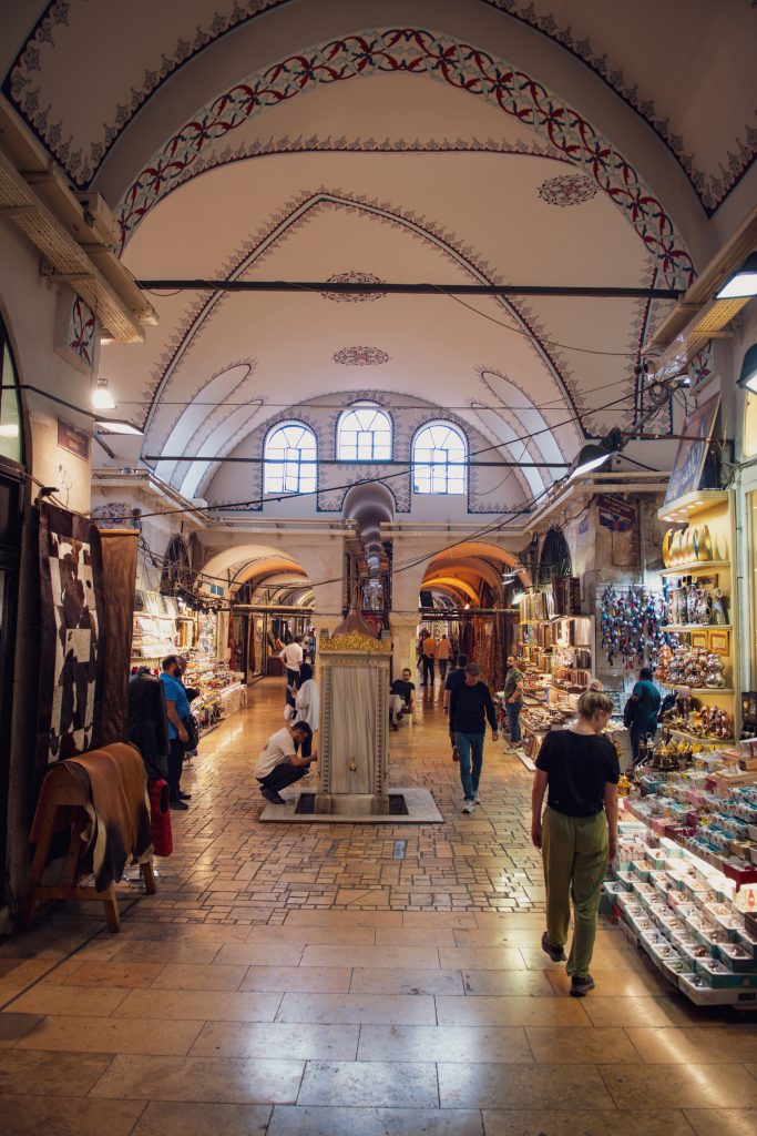 C’est dans ce quartier qu’on retrouve les célèbres grand bazaar et bazaar aux épices d’Istanbul. Les deux bazaars sont couverts et situés dans des bâtiments historiques très impressionnants. Se promener dans les dédalles du grand bazaar et se perdre entre les magasins est définitivement une expérience en soi. Nous vous conseillons de ne rien acheter, les prix étant généralement gonflés à moins de bien savoir négocier. Aux alentours du grand bazaar se trouve des rues marchandes où les mêmes produits qu’au grand bazaar sont offerts, mais à coût grandement réduit. Le bazaar aux épices est plus petit que le grand bazaar et on y retrouve surtout des boutiques d’épices et souvenirs gastronomiques tels des baklavas, mélanges de thés ou encore des sucreries turques. Aux abords du bazaar aux épices, on y retrouve des fromageries, poissonneries et restaurants rapides de toute sorte. Les prix avaient l’air correct, mais nous n’avons rien acheté. On retrouve aussi dans ce quartier la Mosquée Süleymaniye, grandiose bâtiment qu’il est possible de voir de loin. Beaucoup moins achalandé que la mosquée bleue, elle vaut le détour pour la vue qu’elle offre d’Istanbul. L’intérieur fut moins décoré et impressionnant que la Mosquée bleue par contre. Finalement, la place Beyazit tout près du grand bazaar nous a aussi beaucoup plu et il était agréable de s’y promener. Nous y recommandons un café à narguilé, Erenler Nargile Çorlulu, très abordable et situé dans un lieu historique. Leur thé aux pommes, à 80 sous le verre, furent une découverte pour nous.