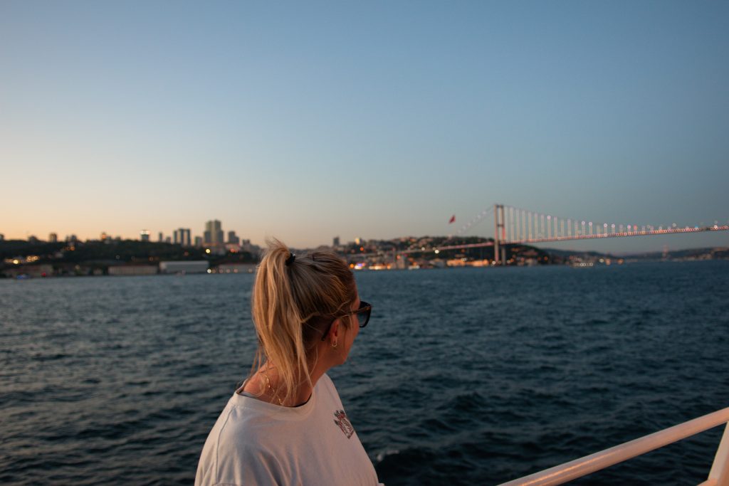 Nous avons eu la chance de faire une croisière au coucher du soleil sur le Bosphore à prix modique, 12$ CAD par personne, et cela fut une belle expérience. Non seulement le bateau permet de parcourir le Bosphore et d’en apprendre davantage sur les quartiers le bordant, nous avons aussi eu la chance d’admirer le coucher du soleil sur la ville. Nous recommandons vivement cette expérience.