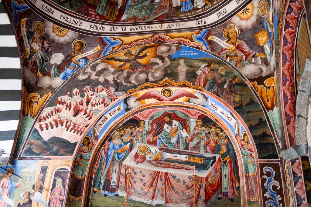 Une fois retourné dans le bus, nous nous sommes dirigés vers le monastère de Rila, un des sites les plus visités de Bulgarie. Ce monastère orthodoxe est impressionnant à visiter avec son architecture unique et frappante. Dédié à Saint-Jean de Rila, fondateur du monastère, on y retrouve aussi une croix membre de l’UNESCO dont son auteur a perdu la vue une fois l’œuvre finie. Durant la période d’occupation Ottomane, le monastère de Rila resta le dernier lieu sacré où toute l’histoire et la tradition bulgare étaient gardées, d’où son importance capitale qu’elle a jouée dans l’histoire. Une fois de retour à Sofia en soirée, nous sommes allés directement dans notre hébergement car le lendemain matin nous devions déjà quitter pour Veliko Tarnovo.