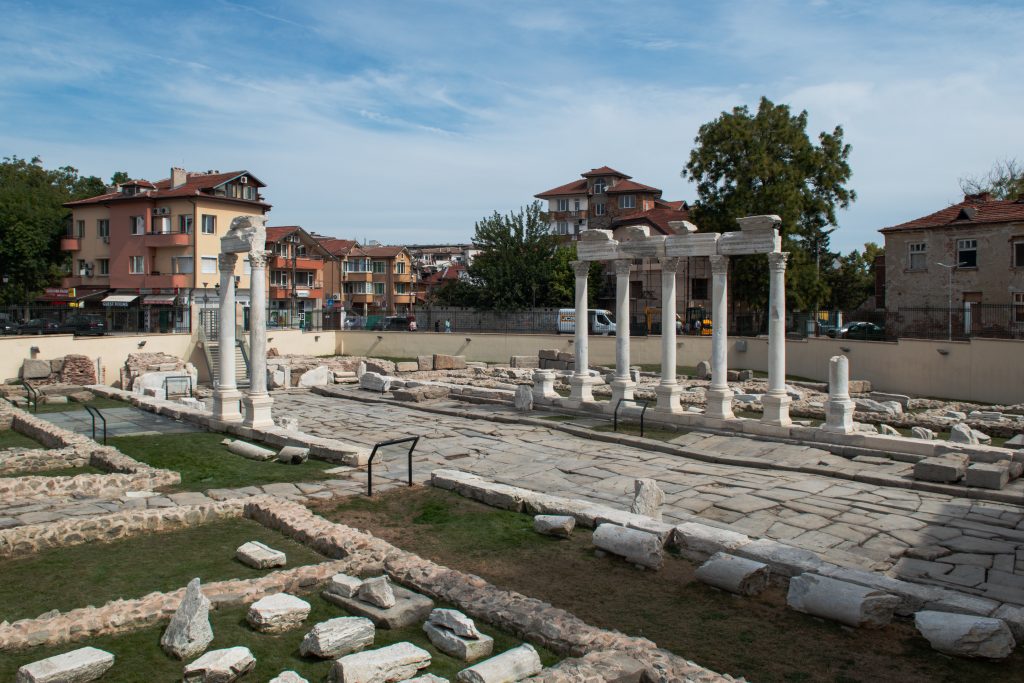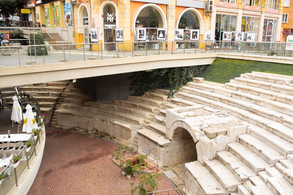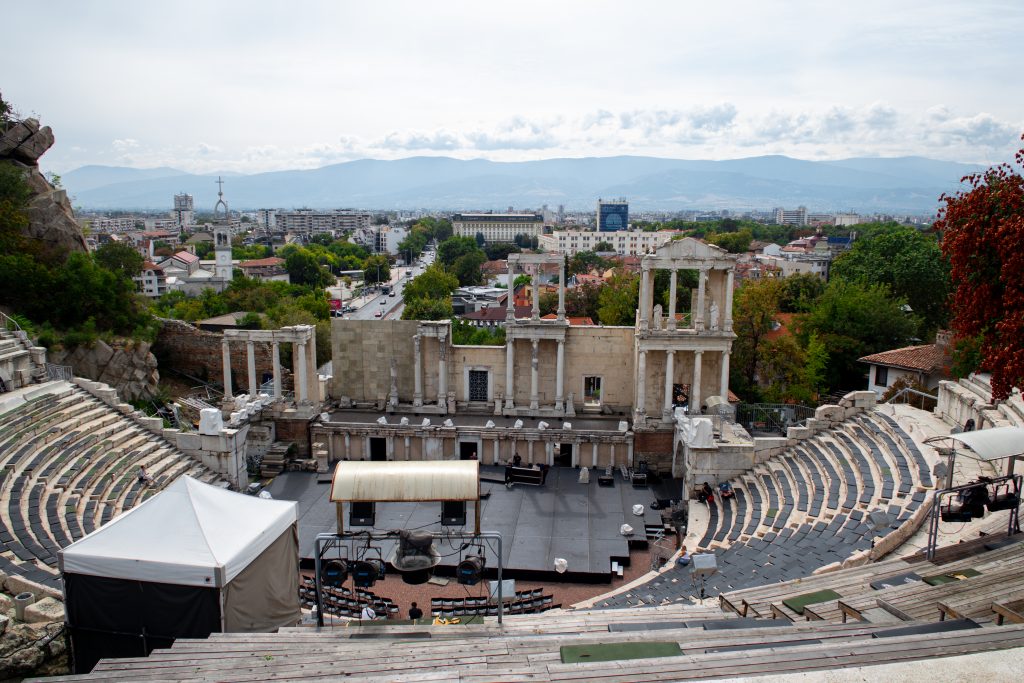 Notre dernière journée en Bulgarie fut fort occupée. Nous avions à l’horaire la visite de Plovdiv jusqu’en fin de soirée d’où nous devions prendre un train de banlieue pour la station de Dimitrovgrad, station de laquelle nous allions embarquer dans le Sofia express à destination d’Istanbul. Afin d’en apprendre davantage sur la ville, nous avons bien sûr fait un walking tour! Comme à Sofia, les premiers signes d’habitations dans la région remontèrent à plusieurs milliers d’années avant JC, mais l’importance accordée à la ville se fit lorsque le roi Philippe II, père d’Alexandre le Grand, conquis la ville et la nomma Philippopolis, 4 siècles avant JC. C’est en 72 avant JC qu’elle devint romaine et on retrouve aujourd’hui les ruines du Forum romain, le théâtre romain, mais aussi le stade romain dont seulement l’entrée a été excavé, le reste se trouvant encore sous terre. Après plusieurs siècles de saccages et conquêtes, la ville fut prise par les Ottomans et on peut d’ailleurs y voir l’influence ottomane dans la nourriture bien sûr mais aussi dans le quartier Kapana. Ce lieu abritait autrefois le bazar, mais il fut reconstruit en totalité en 1906 à la suite d’un incendie ravageur, la majorité des habitations étant fait de bois à l’époque. Même si des maisons plus modernes ont été reconstruites, il est possible de reconnaître les rues sinueuses et le style architectural propre des bazars ottomans de l’époque.