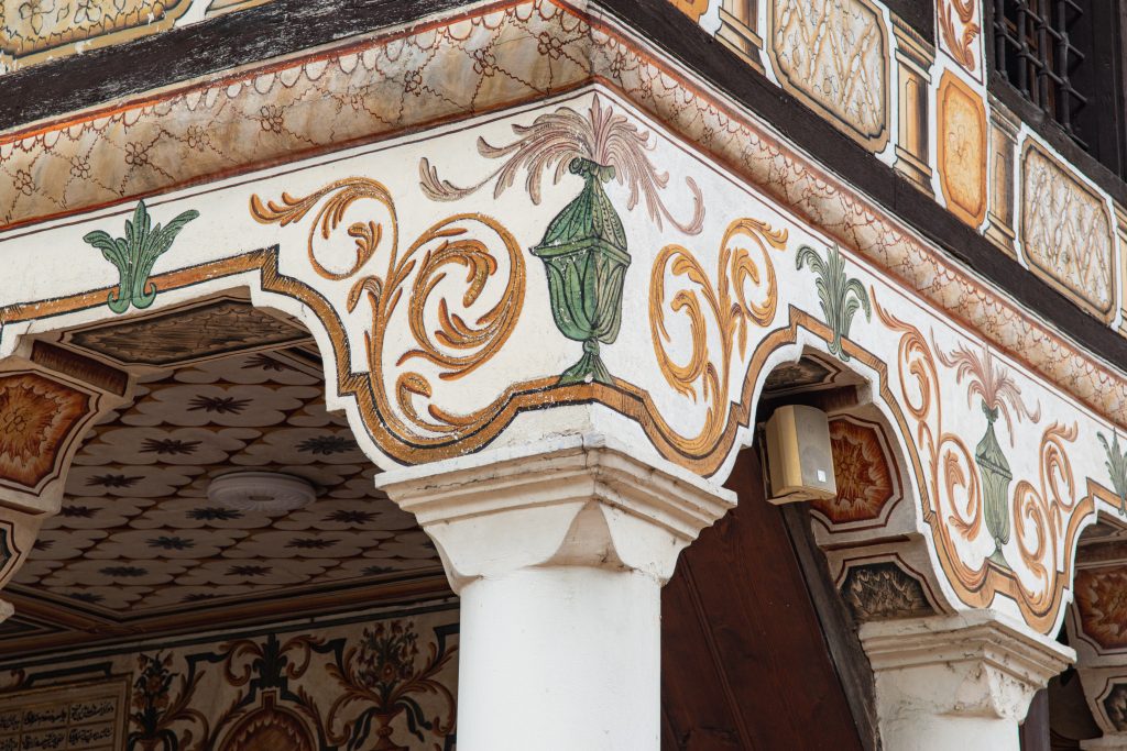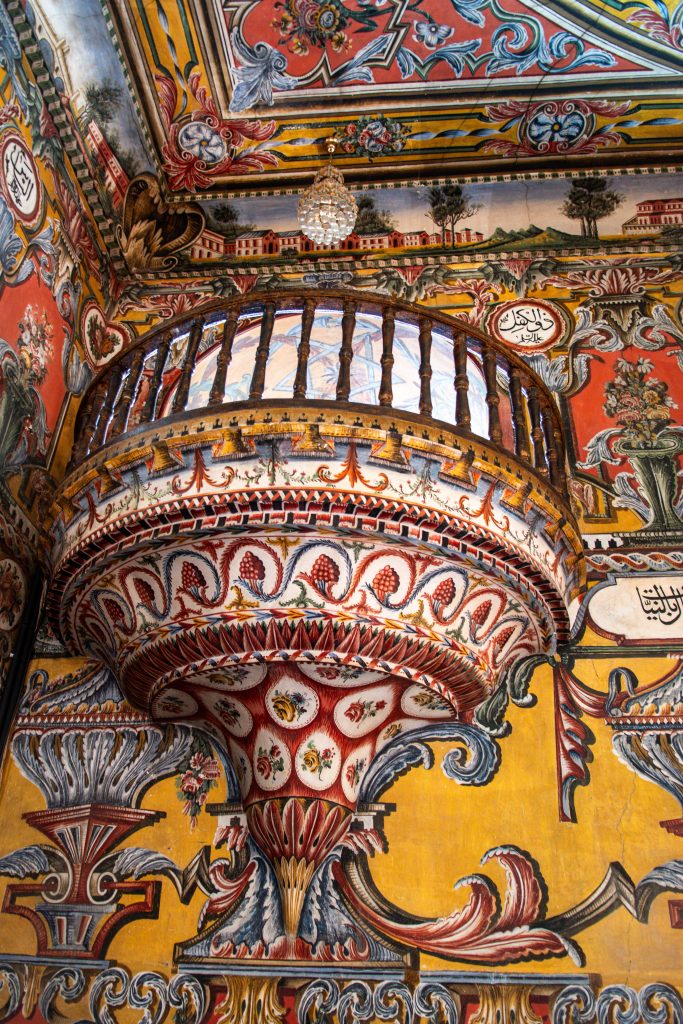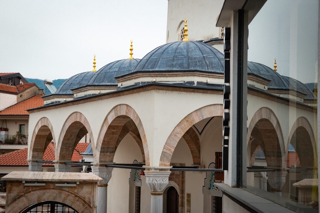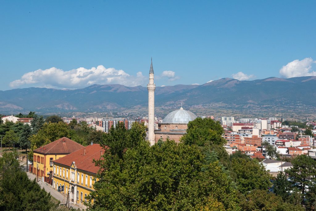 Nous avons pris la route le matin en direction de Skopje où nous devions laisser notre voiture de location en fin de journée. Hélas, cette sensation de liberté à conduire dans les Balkans où nous voulions tire à sa fin. Mais pas avant d’en profiter pour une dernière journée tout de même. Notre premier arrêt se fit à Tetovo. Cette ville se trouve sur la route de Skopje et on y retrouve une forte population d’albanais et de musulmans comparativement à Ohrid. En effet, les églises orthodoxes ont laissé place aux mosquées dont une très célèbre; la mosquée peinte. Comme son nom l’indique, sa façade extérieure et tout son intérieur sont recouverts de panneaux peints à la main. C’était vraiment impressionnant d’observer une telle œuvre sur un tel monument en plein milieu de la ville.