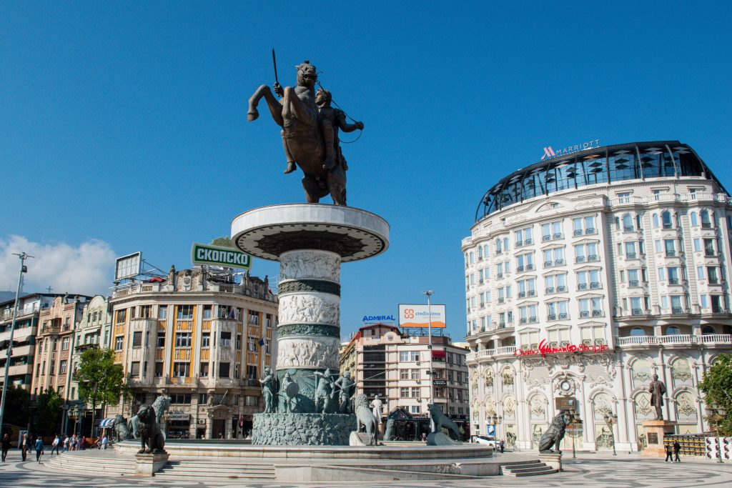 Notre journée a commencé du bon pied avec un free walking tour où nous en avons appris davantage sur la ville mais aussi sur le pays depuis son indépendance en 1991. Suivant l’implosion de la Yougoslavie, les Macédoniens et les Serbes ont passé un accord où les armes stockées sur le territoire pouvaient être utilisées mais en échange, aucun macédonien ne devait être recruté pour ce qui allait devenir la guerre de Bosnie. Cela a eu pour conséquence que ce jeune pays naissant n’avait ni armes ni armée. Donc lorsque vint le temps de trouver un nom pour le pays et que ceux-ci voulurent s’appeler la Macédoine, la Grèce a imposé son veto sous prétexte que le territoire historique de la Macédoine se situait davantage en Grèce et qu’en s’appelant la Macédoine, ce pays avait des visées territoriales. Un peu fort de café sachant que le pays, avec ni armes ni armée, aurait eu des intentions militaires contre la Grèce qui est en plus membre de l’OTAN. La Grèce a aussi exprimé son désaccord avec le drapeau initial de la Macédoine du Nord, arborant le soleil de Vergina et symbole de la Macédoine antique, et qui fut changé pour le drapeau actuel en 1995. Depuis, les nord macédoniens affichent les deux drapeaux selon leur enthousiasme patriotique du moment.