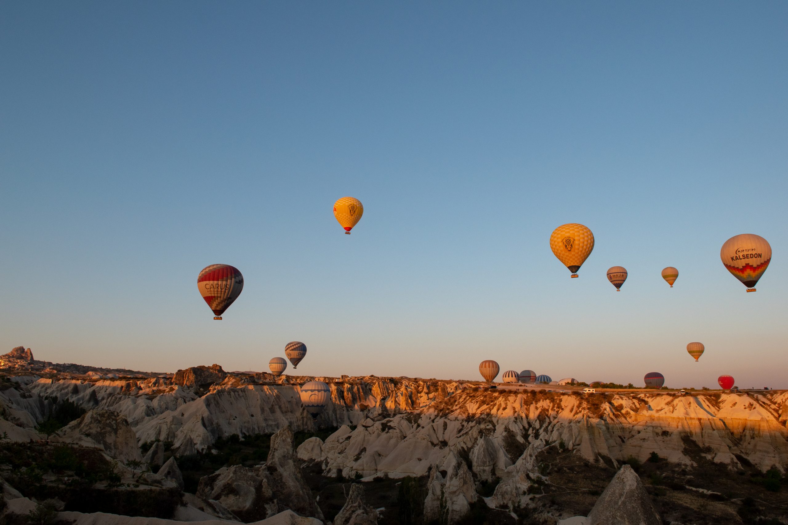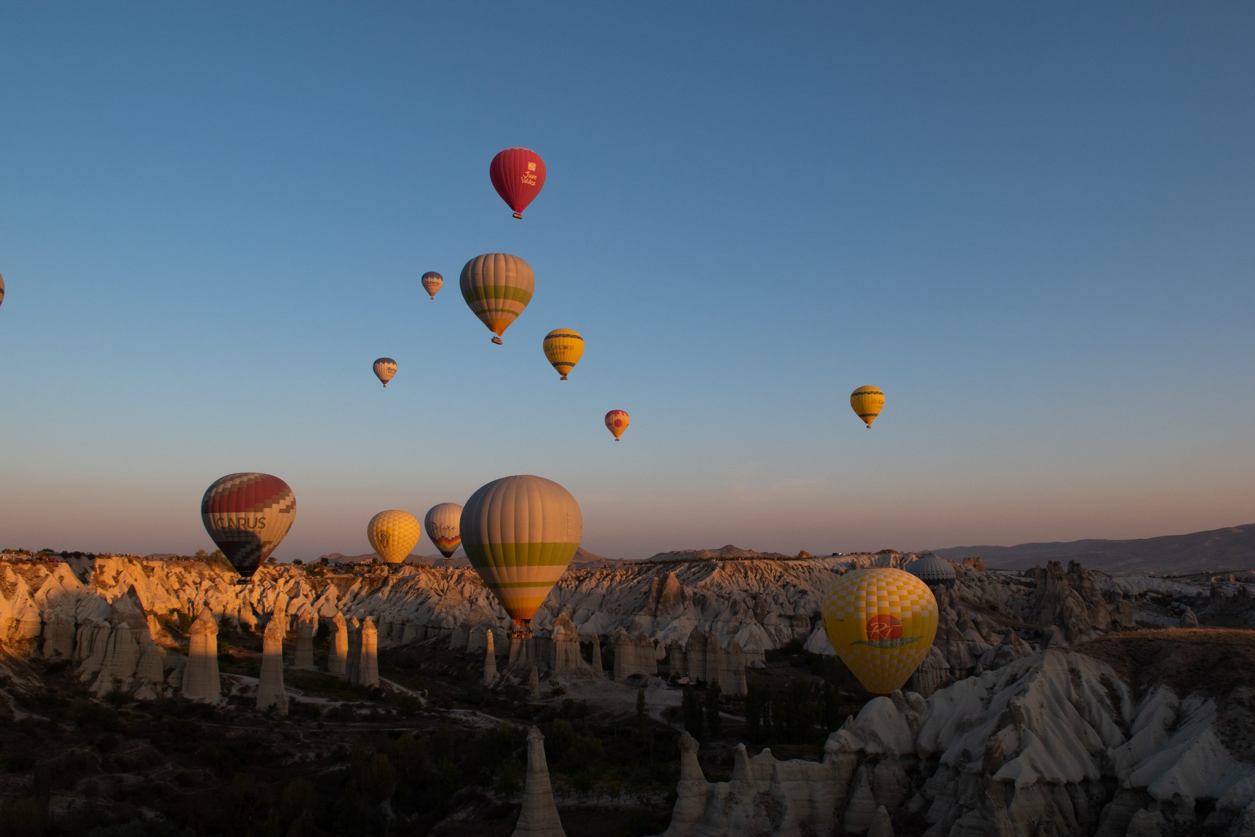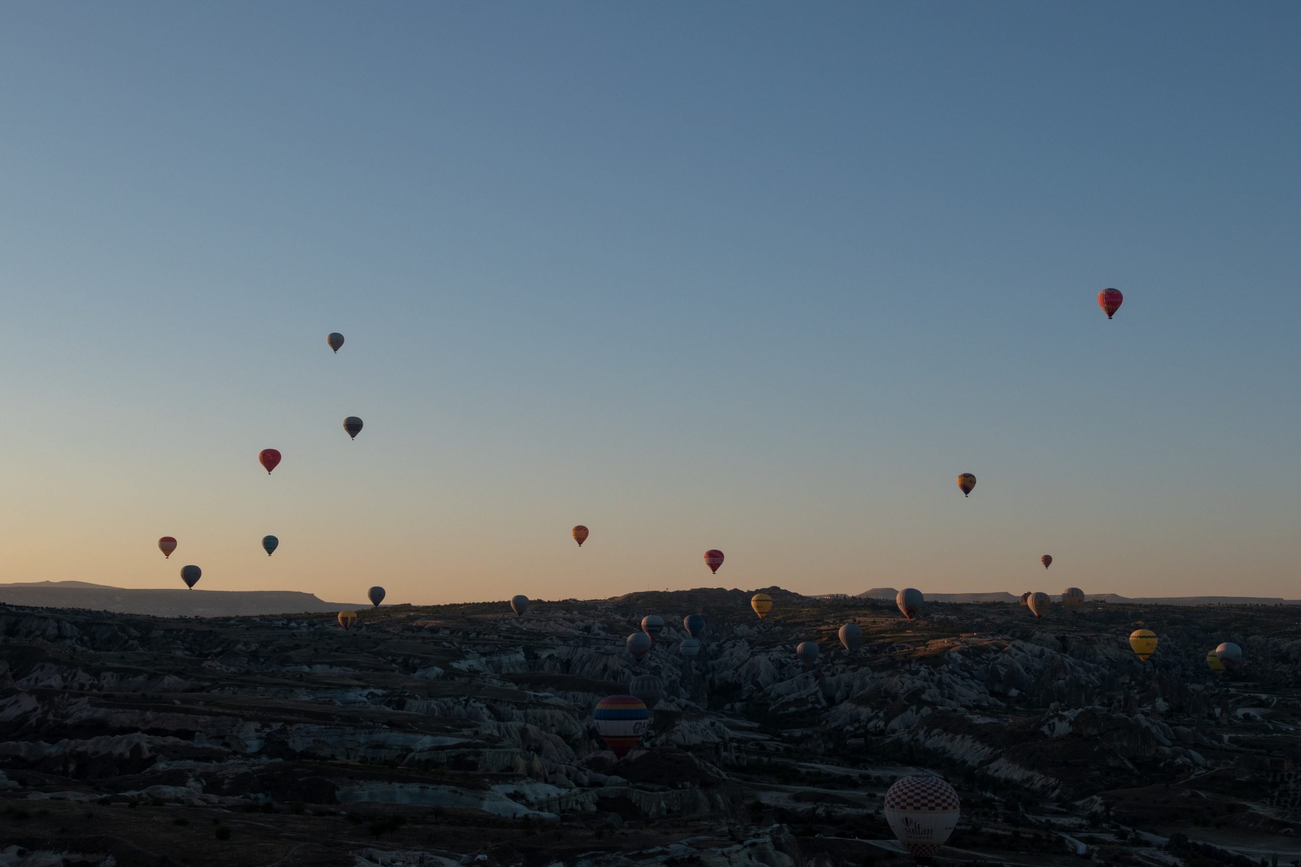 Ces ballons à air chaud qui survolent tous les matins la Cappadoce au lever du soleil offrant un spectacle sublime à tous ces gens restés bien confortablement au sol pour les admirer. Nous avons eu la chance de pouvoir admirer ce spectacle des airs et du sol. Ce fut tout aussi unique et grandiose les deux fois. Voici quelques clichés de ce spectacle sublime.