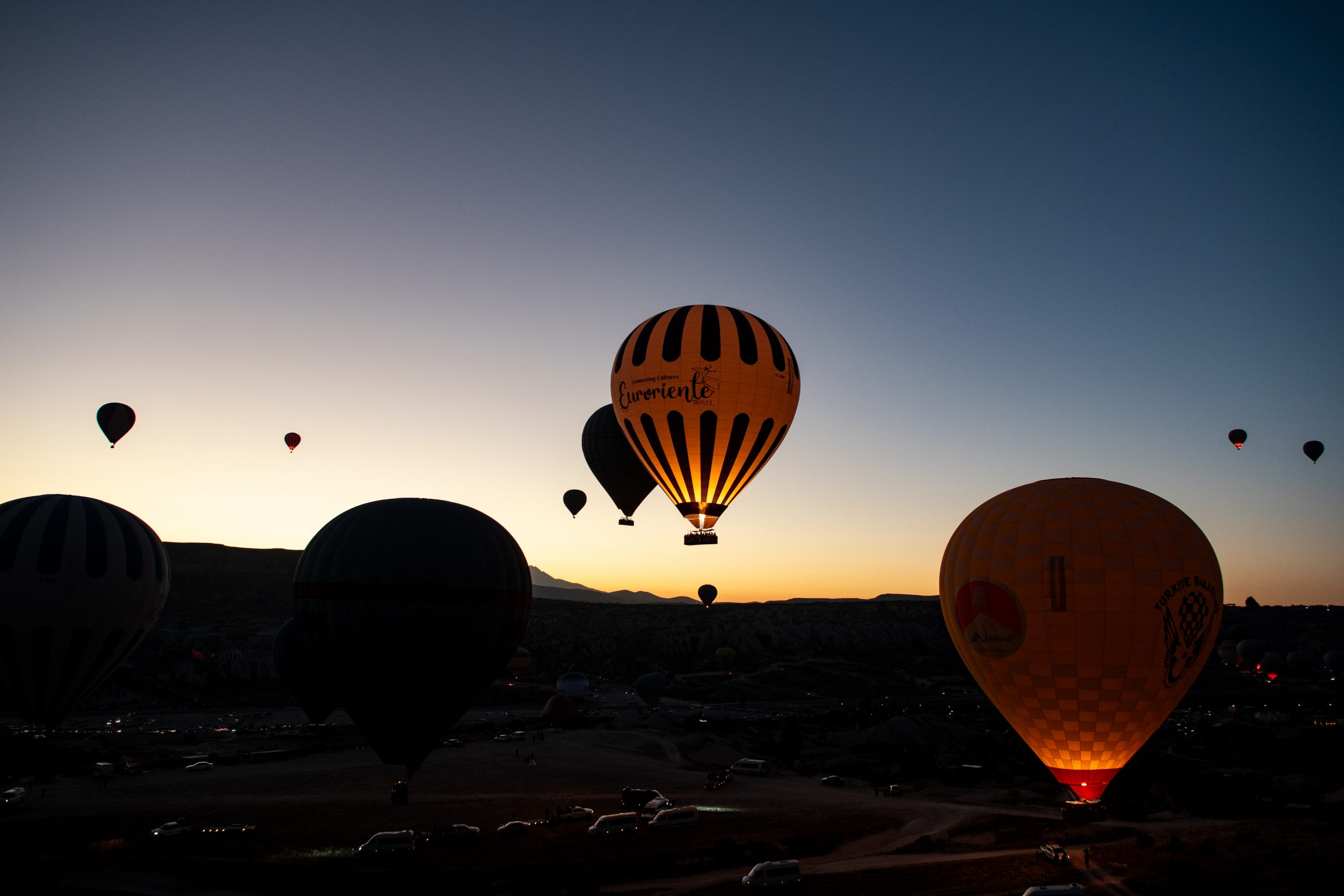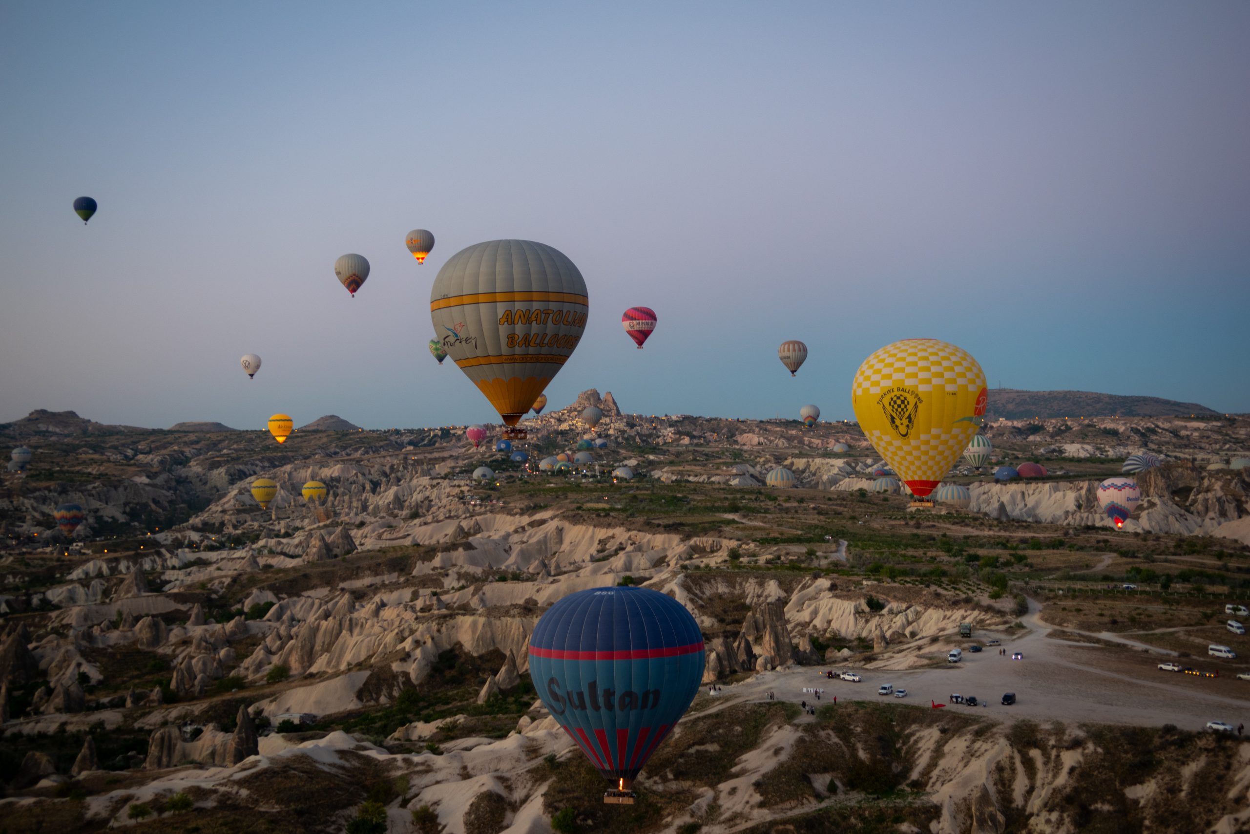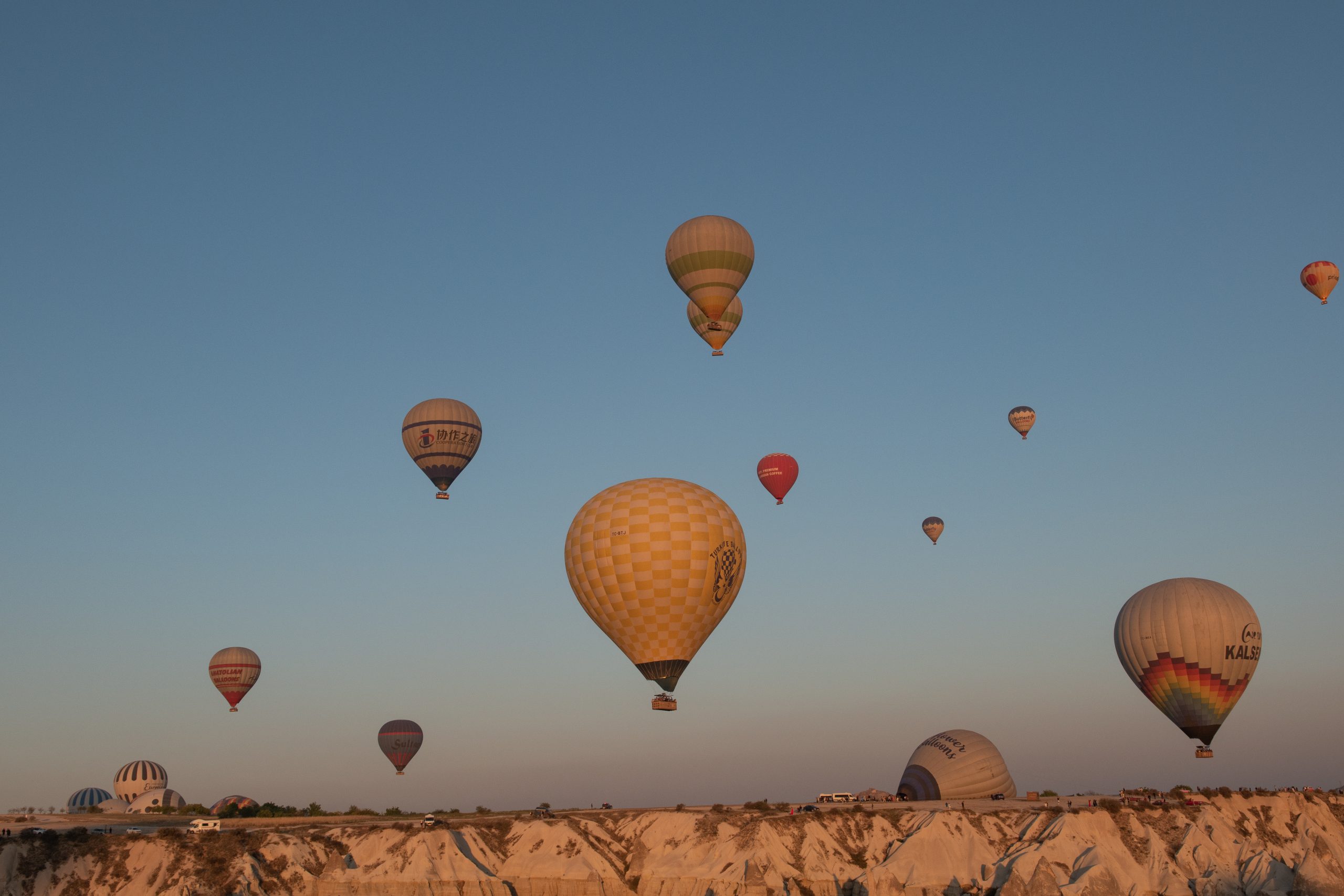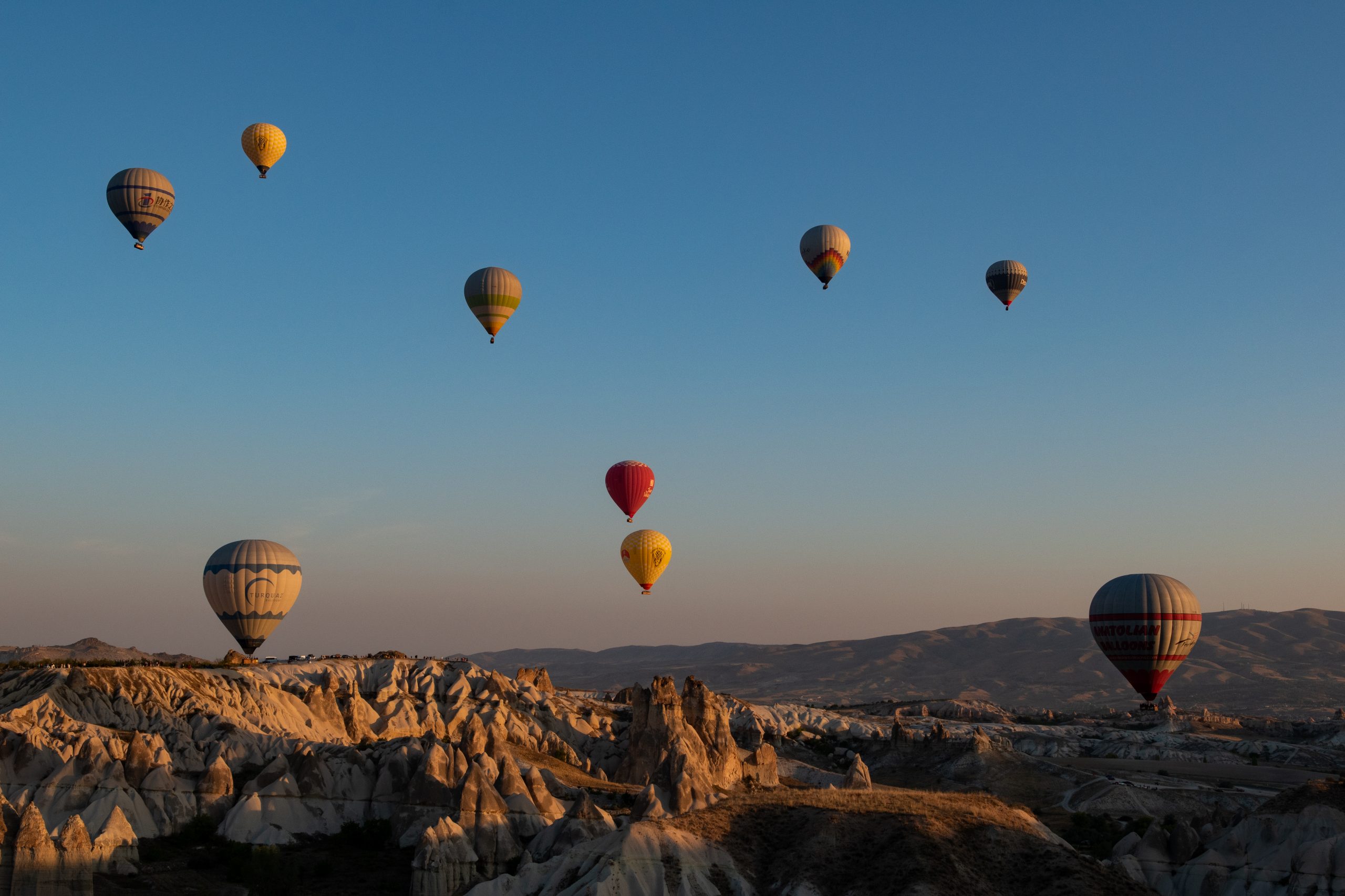 Ces ballons à air chaud qui survolent tous les matins la Cappadoce au lever du soleil offrant un spectacle sublime à tous ces gens restés bien confortablement au sol pour les admirer. Nous avons eu la chance de pouvoir admirer ce spectacle des airs et du sol. Ce fut tout aussi unique et grandiose les deux fois. Voici quelques clichés de ce spectacle sublime.