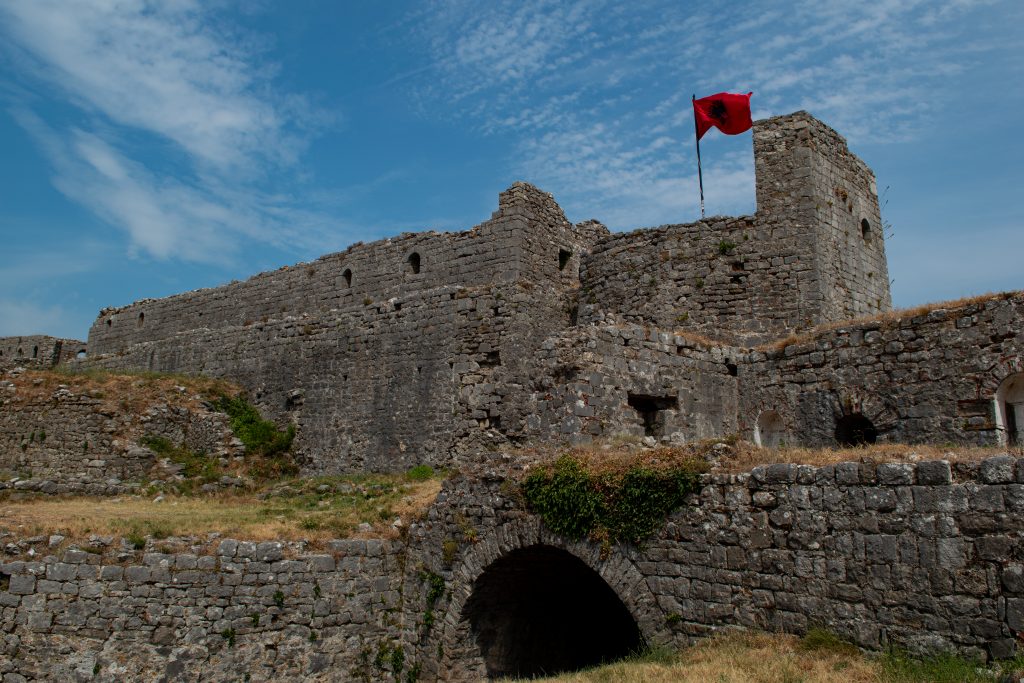 Le lendemain, nous avions en tête de visiter la ville de Skadar avant de nous diriger pour Tirana, la capitale. Nous nous sommes stationnés tout près du centre-ville et avons pu expérimenter la conduite un peu plus chaotique de l’Albanie. Cela étant dit, tout s’est bien passé et il faut accepter ce chaos organisé et y participer pour pouvoir se frayer un chemin et se rendre où l’on veut aller. Outre quelques mosquées et églises ainsi qu’un centre sorti tout droit d’un film avec ces façades et enseignes, la ville se visite rapidement. Il y a aussi le château de Rozafa en périphérie que nous avons fait avant de prendre la route et quitter la région. Selon la légende, le nom tiendrait d’une femme emmurée dans les remparts comme offrande aux dieux pour que le château tienne.
