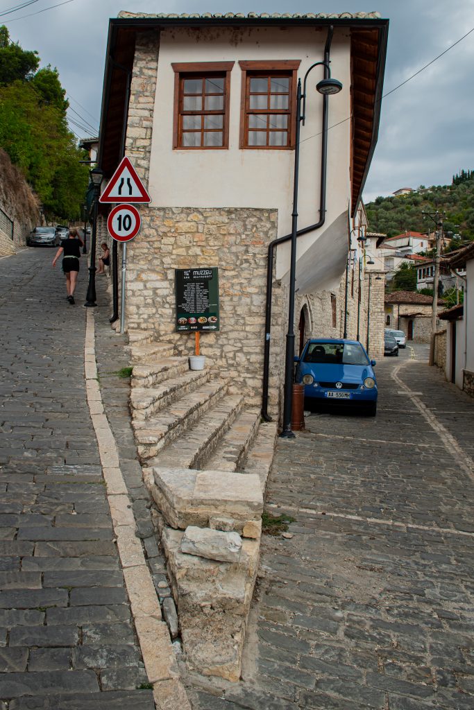 Avant de nous diriger vers Berat, nous avons quitter Tirana pour nous rendre à Dürres, ville côtière d’Albanie. Nous y avons passé quelques heures pour y visiter la ville qui a ces attraits mais elle se fait assez vite. Il y a des ruines d’un amphithéâtre romain, mais contrairement à d’autres lieux, peu mises en valeur. Sinon des restants de fortifications vénitiennes et bien sûr, des bâtiments de l’ère communiste ainsi que des bunkers de défense, pouvant abriter quelques soldats à la fois en cas de défense de la ville. Nous avons profité par la suite de la plage de Golemi un peu au sud de Dürres où la baignade fut agréable et où nous avons enfin pu avoir accès à des plages de sable. En après-midi nous avons pris la route pour Berat et avons rejoint notre logement se situant à flanc de colline. Il nous a fallu l’aide du gérant pour stationner la voiture. D’ailleurs, en cherchant l’hébergement, Jan s’est mis sur les quatre flasheurs dans une rue, bloquant la voie pour quelques minutes, ce qui a engendré l’impatience d’un local qui circulait par là. Nous avons profité du reste de la soirée pour visiter la vieille ville et admirer les façades de Berat, inscrites au patrimoine de l’UNESCO.