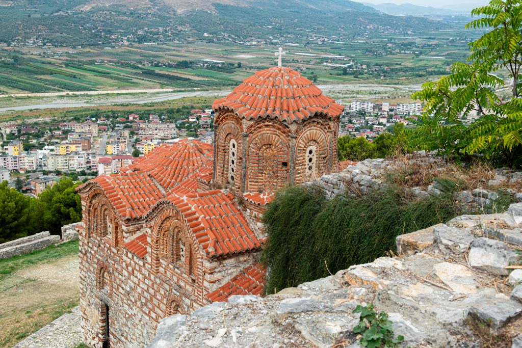 Le lendemain nous avons commencé notre journée avec l’ascension jusqu’à la forteresse de Berat. Le gouvernement avait initialement l’intention de rendre le lieu payant avant d’abandonner le projet suite à l’opposition des habitants et il est permis de visiter le tout sans frais. On peut d’ailleurs encore y voir les tourniquets à l’entrée. La visite de la forteresse permet d’avoir accès à un beau panoramique de la ville. Suivant la visite de la forteresse, nous nous sommes arrêtés dans un café pour relaxer un peu, n’étant pas encore remis à 100% de notre intoxication à l’eau. Cela nous a d’ailleurs pris un bon 10 jours avant de voir une amélioration, de loin notre pire expérience jusqu’à présent. En soirée, nous sommes retournés dans la vieille ville pour souper dans un restaurant servant des mets traditionnels Albanais, un menu pour 2 avec plusieurs plats pour 30 euros.