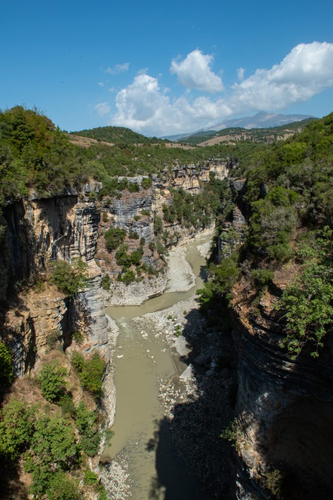 Nous avons quitté Berat dans la matinée pour rejoindre Gjirokaster, mais avant cela, nous voulions nous arrêter au canyon d’Osumit à 90 minutes à l’est de Berat. Les paysages en Albanie sont vraiment magnifiques, variant entre canyons, montagnes et vallées. Il est possible d’y faire du rafting, mais nous n’avons pas opté pour cette activité lorsque nous avons vu le faible débit de la rivière dans le canyon. Suivant la visite du canyon, il était possible de rejoindre Gjirokaster en suivant une route dans les montagnes. Elle fut stressante à quelques occasions, mais jamais nous n’avons été inquiétés niveau sécurité. Le fait de posséder une voiture automatique a grandement aidé dans des sections de cette route. Et le fait qu’il n’avait pas plu depuis un bail a aussi aidé, certains segments de la route étant couvert de glaise et de terre. Parcourir 26km nous aura pris un peu plus de 1h30. Arrivé à Gjirokaster, nous nous sommes rendus au pont d’Ali Pasha tout en haut de la ville dans les montagnes. Nous avons par la suite enchaîné avec la visite du château, très bien préservé et intéressant à visiter. Nous avons terminé avec la visite du bazar de la ville où nous avons souper des mets traditionnels Albanais. Ce fut encore une fois délicieux et avons particulièrement aimé les vignes farcies.