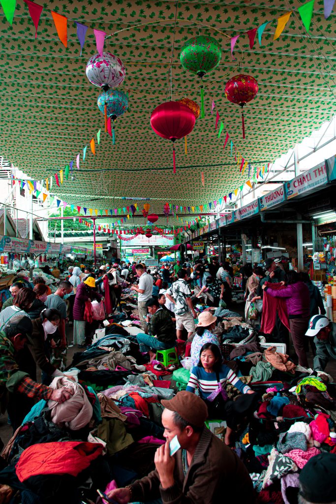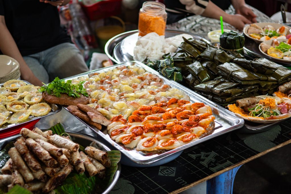 Nous avons profité d’une de nos journées pour parcourir la ville. Notre premier arrêt se fit au marché local Con où nous avons pu déguster pour la première fois du Banh Trang Cuon Thit Heo, assiette de viande, feuilles de riz, herbes et vermicelles que nous devions assembler nous-mêmes. Ce marché est surtout fréquenté par les locaux et nous avons aimé pouvoir y observer la vie quotidienne du marché.