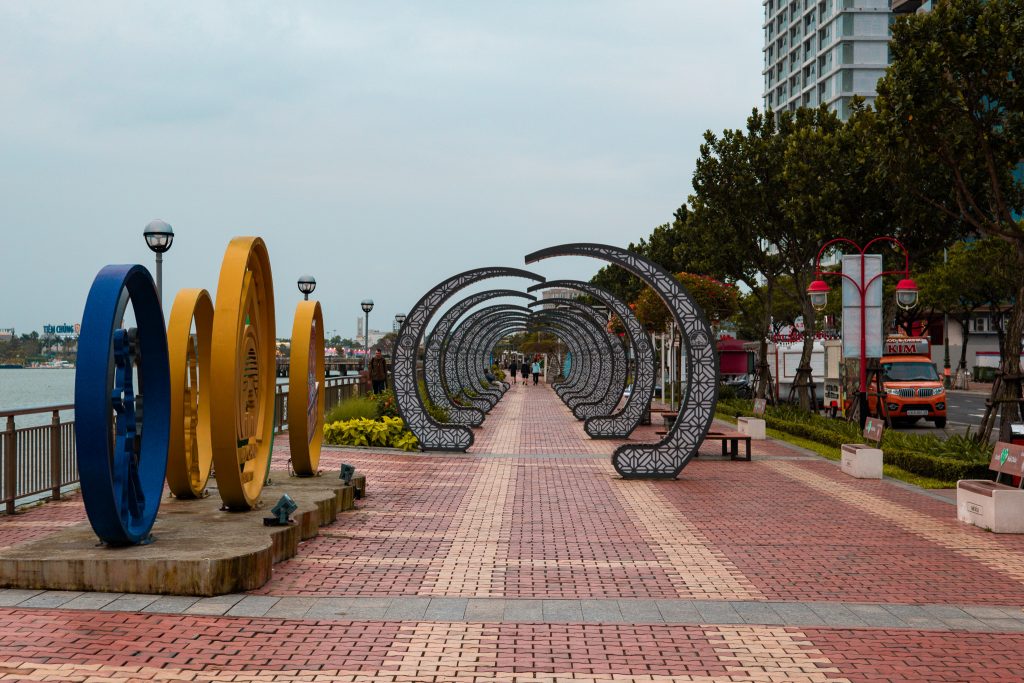 De là, nous avons marché direction sud dans les rues bondées et bruyantes de la ville avant de pouvoir rejoindre le bord de l’eau et accéder à la promenade piétonne. Malgré le temps plus grisâtre, nous avons pu avoir un bel aperçu de Da Nang et des différents ponts traversant la rivière Han. Nous sommes retournés sur notre rive près des plages, n’ayant pas trouvé grande activité à faire par la suite. Nous avions espéré voir un marché de nuit près de Cho Vui-Fest, mais avons réalisé que c’était un parc d’attractions avec entrée payante peu achalandé.
