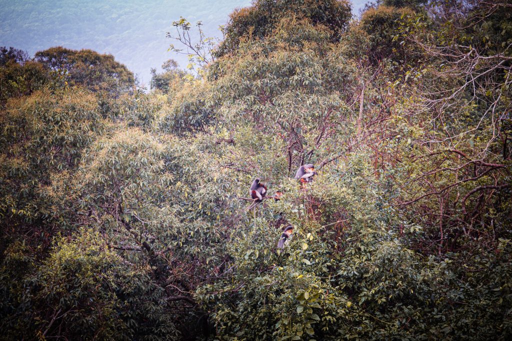 Au nord de Da Nang se trouve la montagne Son Tra ainsi qu’une réserve protégée où habite une population de douc à pattes rousses. Nous avons décidé de faire une randonnée dans cette réserve. Afin de rendre notre randonnée plus agréable, sachant que nous allions faire plus de 17 km, nous avons pris un grab pour nous déposer au point de vue de Nha Vong Canh. De là, nous n’avions qu’à suivre la route vers l’est jusqu’à l’InterContinental Da Nang Resort. Le temps gris ne nous a pas permis d’avoir les vues impressionnantes sur la baie et la ville de Da Nang. Par contre, ce temps plus frais fut agréable pour la randonnée. Et tout au long de celle-ci, nous rencontrions des doucs à pattes rousses, récompense parfaite pour notre effort.