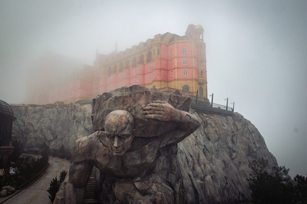 Situé en altitudes, nous avons attendu à la dernière minute avant de réserver notre journée pour nous y rendre, espérant une météo plus clémente et des éclaircies qui allaient nous permettre d’avoir des vues sur la région. Malheureusement pour nous, notre pari a échoué et ce fut une journée passée dans la brume et les nuages, nous empêchant de pouvoir admirer dans sa splendeur le pont doré et le panoramique sur la région. Nous avons quand même passé plusieurs heures à visiter le site, celui-ci étant assez grand et proposant quelques activités et parcs à thèmes intéressants comme le village médiéval, le château lunaire, des jardins et une brasserie. Les prix sont cependant exorbitants, comme à Universal Studios finalement. Le billet est d’environ 54$ CAD par personne et inclus l’accès au site, la gondole et quelques attractions. Il faut cependant payer un supplément pour certaines attractions dont le musée de cire, où la statue de Trump était mise de l’avant pour promouvoir le musée. Inutile de dire que nous n’avons pas visité celui-ci. Nous avons une opinion mitigée de Ba Na Hills. Autant le site fut agréable à visiter et notre journée bien remplie, autant il faut accepter le fait qu’il faudra débourser de l’argent pour en profiter. Et que la météo peut avoir une grande incidence sur la satisfaction globale, ce qui fut notre cas.
