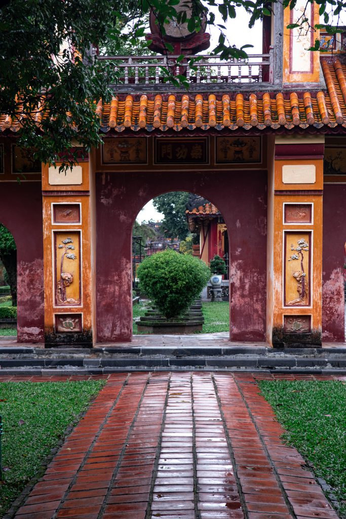 Le site du mausolée de l’empereur Minh Mang, 2e de la lignée, est tout de même imposant. On y retrouve un enchaînement de temples et lieux de recueillement menant jusqu’au tombeau de l’empereur. Et le tout situé dans un grand espace vert où un lac artificiel a été construit lors de la conception du lieu. Nous y avons passés facilement 1 heure et avons trouvé la visite agréable.