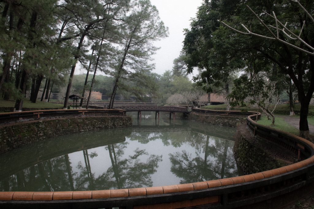 Nous avons par la suite pris la route vers le temple Tu Duc, lieu que nous avons trouvé sublime. En effet, ce site est légèrement plus petit que le précédent, mais son aménagement est mieux élaboré et il est plus agréable de s’y promener. En plus du lieu du tombeau et des temples principaux, on y retrouve un bassin artificiel avec une île artificielle en son centre que l’empereur aimait bien aller visiter et méditer de son vivant. Nous y avons flâné facilement 1 heure ici aussi. Le coût d’entrée de chacun de ces sites revenait à 150 000 VND, somme que nous avons trouvé tout de même dispendieuse. Et ce n’est qu’au 3e site que nous avons aperçu qu’un billet combinant le mausolée de l’empereur Minh Mang, le temple Tu Duc et la cité impériale pour 420 000 VND, soit 60 000 moins cher que si acheté séparément. Un pensez-y bien quand cela équivaut au prix d’un dîner!