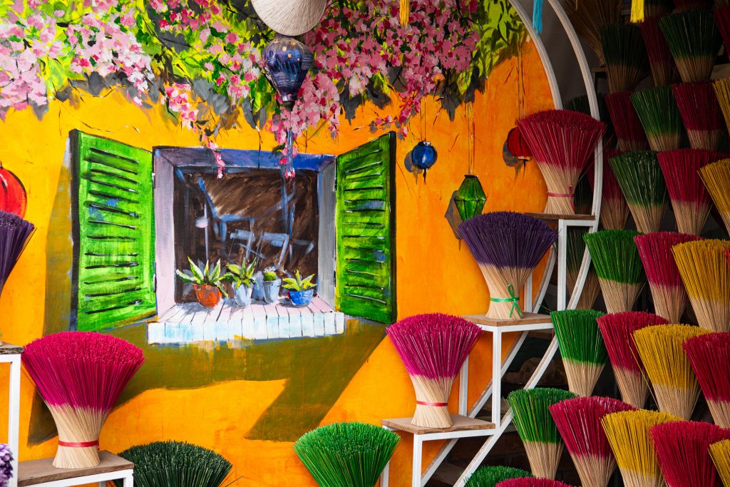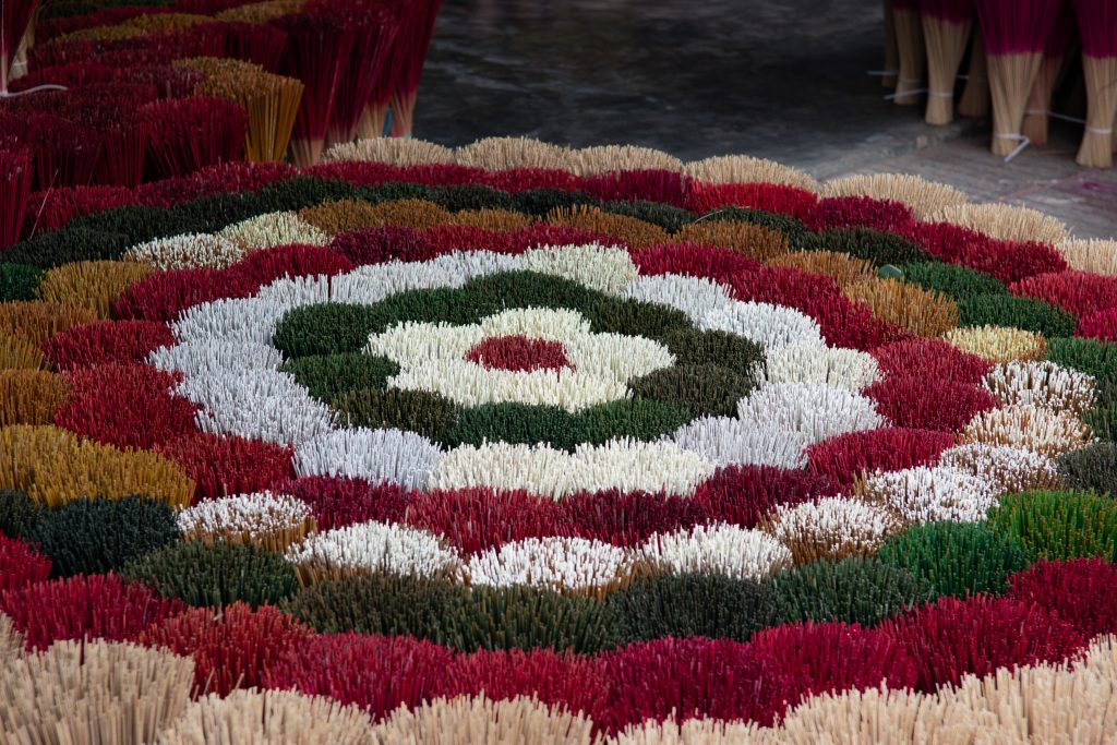Non loin du temple Tu Duc se trouve le village d’encens. La visite s’est résumée à arpenter la rue et observer les quelques boutiques où des milliers de bâtons d’encens sont disposés. Le tout est sympathique et par chance que nous étions dans le coin, car à lui seul, cela ne vaut pas le détour. Il est aussi possible de payer pour se faire prendre en photo parmi les encens, pour notre part, les photographier de loin furent suffisant.