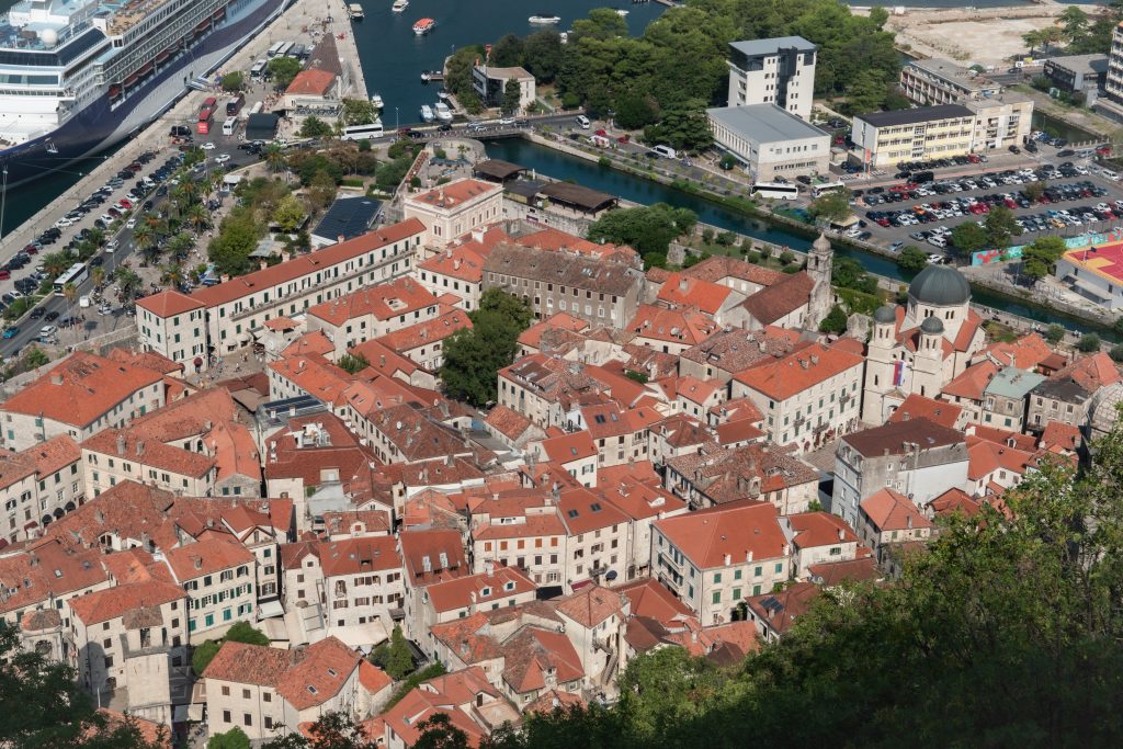 Après une bonne nuit de sommeil sans rêver aux punaises de lit, il était temps de visiter la ville. Notre première activité fut d’escalader les remparts de la ville jusqu’à la vieille forteresse afin d’avoir un beau panoramique des bouches de Kotor. On peut qualifier cela d’attrape-touriste car l’accès est de 15 euros par personne. Et la meilleure dans tout ça, c’est qu’il existe un sentier de randonnée juste à côté (chercher Start of the ladder of kotor sur google maps) qui permet l’ascension en ayant vue sur les remparts et, au sommet, permet un accès dans la forteresse. Peu importe le chemin emprunté, le résultat restera le même : un panoramique et des vues à couper le souffle sur la région. Lors de notre passage à Kotor il y avait beaucoup de touristes, explicable par la présence de quatre bateaux de croisières. En effet, Kotor et sa baie reste une destination très prisée des croisières. Une fois le tour de la ville faite, nous avons repris la voiture pour nous éloigner de Kotor et nous rendre à la plage de Galbevoa Stijna à une quinzaine de minutes de là. Nous avions une autre journée au-delà des 30 degrés et la baignade nous fit du bien.