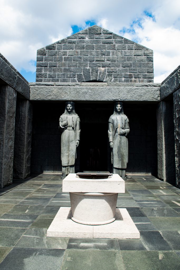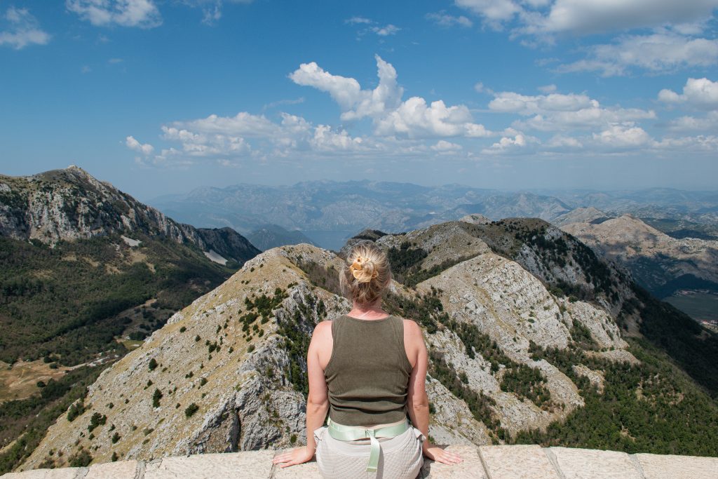 Il était déjà temps de quitter Kotor et la côte pour notre séjour dans les montagnes du Monténégro. De Kotor, il fallait franchir les remparts montagneux d’où culmine le mont Lovcen en empruntant une route serpentine à 25 virages en épingle à cheveux et d’où il est possible d’avoir des vues impressionnantes sur Kotor et les environs. Une fois les serpentins franchis, nous étions arrivés au parc national du mont Lovcen et du mausolée de Njegos. Ce lieu vaut la peine d’être visité tant il est étrange, mais grandiose à la fois. Le poète Petar II Petrovic Njegos, considéré comme le plus grand héros du Monténégro, a émis le souhait d’être enterré au mont Lovcen. Son souhait fut exhaussé et depuis 1974, on peut y visiter son mausolée, perché à 1660 mètres d’altitude, après avoir monté plus de 400 marches. Il en coûte 8 euros par personne pour visiter le site et on a accès à une plateforme panoramique 360 derrière le mausolée.
