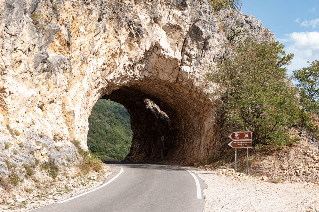 Au bout de la P14 se trouve le lac Piva et son canyon, très impressionnant à voir de haut. De plus, la route que nous prenions étaient composés de tunnels creusés à même le roc, une expérience de conduite inégalée.
