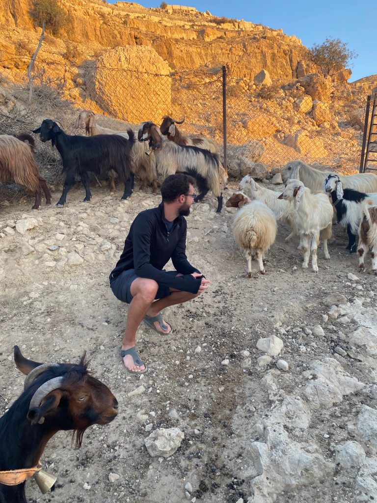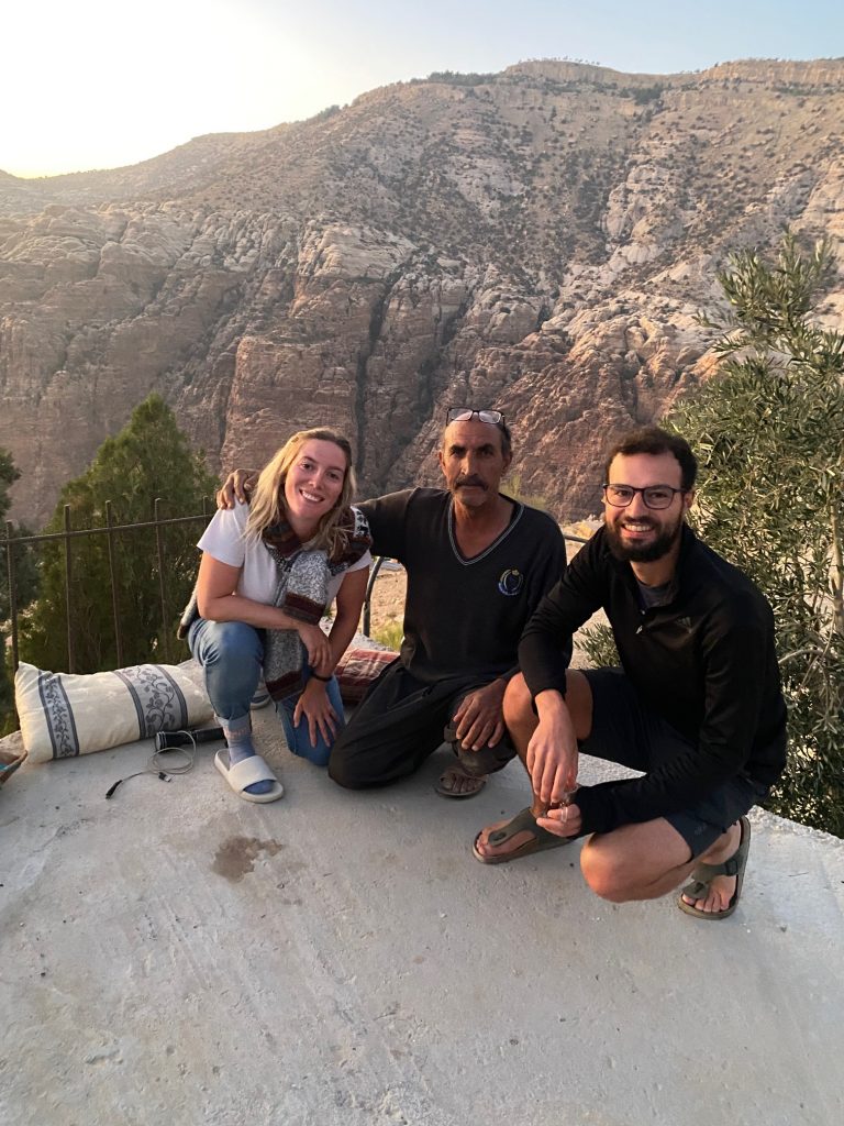 Sur le chemin du retour, un bedouin nous a invité pour du thé et nous avons eu une connexion particulière avec celui-ci. Il nous a montré son jardin, ces ânes et a trouvé Chanel particulièrement drôle et charmante ce qui nous a valu d’être réinvités en soirée pour que l’on puisse observer ces chèvres qui revenaient de la vallée. Nous avons été charmés par sa grande hospitalité qui s’est prolongé le lendemain lorsque nous l’avons reconduit au village où se trouve sa maison, sa femme et ces filles et où il nous a invité dans sa demeure pour nous offrir du thé et de quoi manger. Nous étions dans son salon à manger avec ces gens que nous venions de rencontrer, mais avec qui nous avons pu échanger et rire. Ce fut une autre rencontre qui restera à jamais gravée en nous.